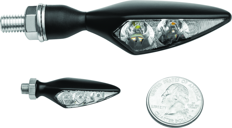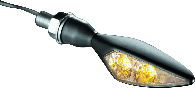 Kuryakyn Kellerman micro Rhombus Series turn signals have aggressive lines to complement virtually any bike! The indicators feature durable glass lenses with sleek angular metal housings and a flexible rubber base that absorbs impact, and helps prevent vibration damage. Order the micro Rhombus turn signals in the lens color and housing finish that best complements your bike.