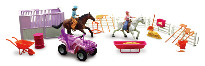 New Ray Toys Valley Ranch Set with Pink ATV, Figurines and Horses