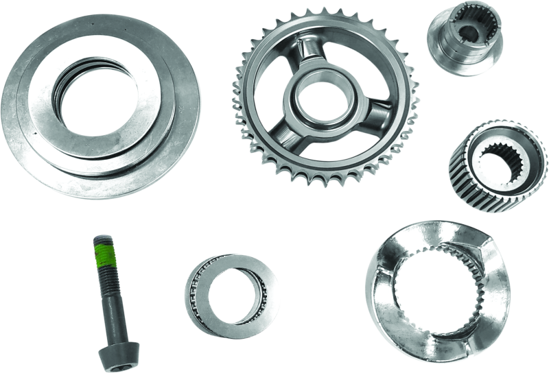 The Twin Power™Premium M8 Compensator Kit has been re-engineered for better performance and reliability, while handling increased torque and horsepower. Kit includes a precision CNC-machined 34T compensator sprocket and retainer nut, heavy-duty spring pack, heavy-duty thrust bearing and washer, shaft extension, and a heat treated and polished slider cam for a smoother operation.